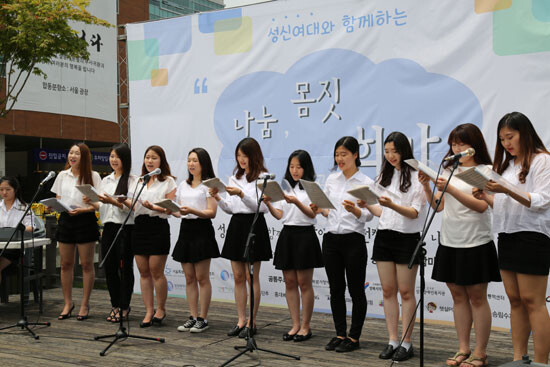 성북구청 바람마당에서 열린 이번 행사에는 성신여대 체인지 사회봉사단과 메이크업디자인학과 학생들이 참여해 장애인식 개선을 위한 캠페인, 나눔장터 활동, 페이스페인팅 이벤트 등을 진행했다. 또 합창동아리 ‘성신콰이어’와 클래식기타 동아리 ‘주리울림’이 각각 중창공연과 합주를 선보이며 행사 참가자들에게 즐거움을 선사했다.