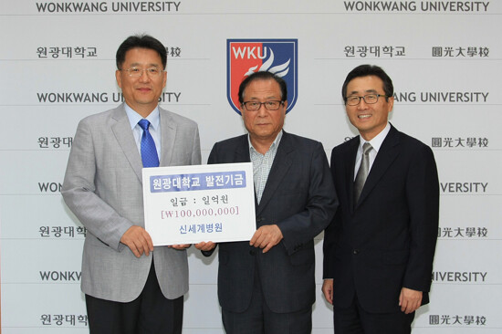 이에 따라 원광대는 2014년분 1000만 원을 의예과 및 의학과, 간호학과 재학생 중 10명의 학생을 선발해 각각 100만 원씩 전달하기로 했다.
