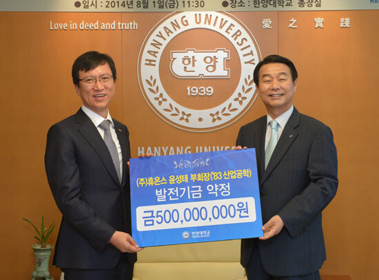이를 위해 윤 부회장과 한양대는 1일 한양대에서 '발전기금 약정식'을 가졌다. 한양대 산업공학과 83학번인 윤 부회장은 2006년 보건복지부장관 표창 및 국무총리 표창, 2013년 공정거래위원장 표창 등을 받은 바 있다.