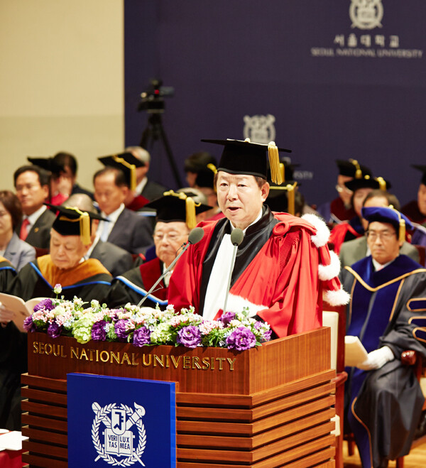 또한 성 총장은 "서울대가 사회적 이동성(social mobility) 제고에 기여하기 위해서는 다양한 잠재력을 가진 소외계층과 소외지역의 인재를 적극적으로 발굴·육성하는 입시와 교육 제도를 마련해야 한다"며 "또한 민족의 숙원인 통일 대업의 길에 서울대가 연구 중심축이 돼 통일한국의 국가전략을 제시함으로써 미래 한국의 나아갈 바를 제시하는 선도적 역할을 다하도록 하겠다"고 말했다.