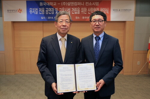 김희옥 총장은 지난 4일 본관 로터스홀에서 D-씨어터 컨소시엄(주관사 ㈜설앤컴퍼니) 설도윤 대표를 만나 뮤지컬 전용 공연장 및 교육시설 건립 등을 목적으로 하는 업무협약을 체결했다. 이에 따라 양 기관은 앞으로 동국대 서울캠퍼스 수영장 부지를 개발해 1900석 규모의 뮤지컬 전용 공연장, 교육시설 및 지하주차장 등을 조성하기로 했다.