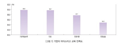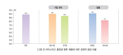 무엇보다 기업의 88.9%가 향후 마이스터고 졸업생을 지속적으로 채용해야 한다고 응답해 마이스터고 졸업생에 대한 만족도가 매우 높은 것으로 분석됐다.