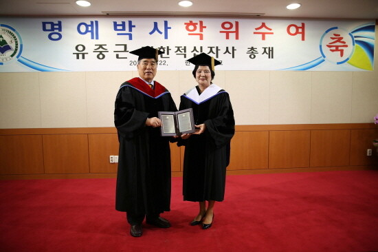 한서대학교(총장 함기선)는 22일 대한적십자사 유중근 총재에게 명예문학박사학위를 수여했다.