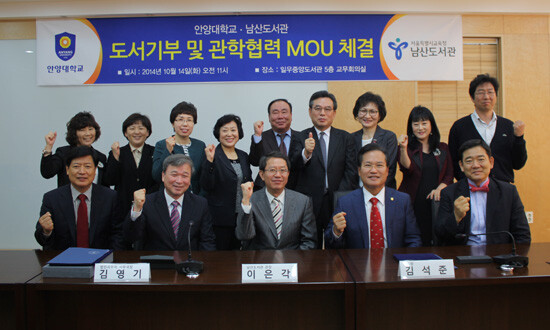 안양대와 남산도서관이 정보와 지식이 지식기반사회의 원동력이자 국가의 주요 자산이라는 인식을 같이하고, 상호간의 정보교환 및 제반 업무의 유기적 협력을 통해 상호발전 도모를 위한 취지다.