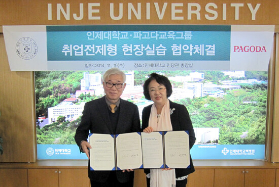 이번 협약은 양 기관이 '취업전제형 기업 Needs 맞춤형 인재양성 프로그램'을 시행하기 위해 마련됐다. 이에 따라 인제대는 실습생 파견을 위한 특별과정을 신설한다. 파고다교육그룹은 선발된 실습생들에게 경영지원, 출판편집, B2B마케팅 등 다양한 현장교육을 실습시킨다. 이를 바탕으로 우수한 수료생들을 정규직으로 채용한다는 계획이다.