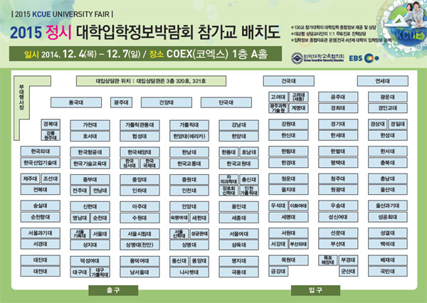 ■12월 4일부터 개최, 역대 최대 규모 참가= 이번 대교협 정시박람회는 오는 12월 4일부터 7일까지 서울 강남구 삼성동 코엑스 1층 홀A에서 개최된다. 참가 대학 수는 130개 교로 역대 최대 규모다. 특히 수도권을 비롯해 전국 각지에 소재한 대학들이 모두 참가한다. 따라서 대교협 정시박람회를 방문하면 한 자리에서 전국 주요대학들을 모두 만나볼 수 있다.