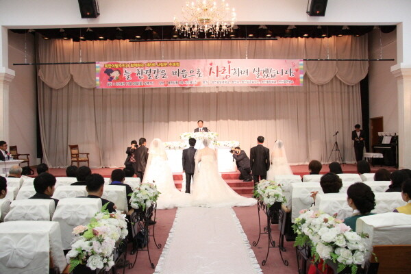 용인송담대학교(총장 최성식) 사회봉사단은 지난 29일 용인시청 내 시민예식장에서 '새터민 합동 초례청' 봉사활동을 시행했다.