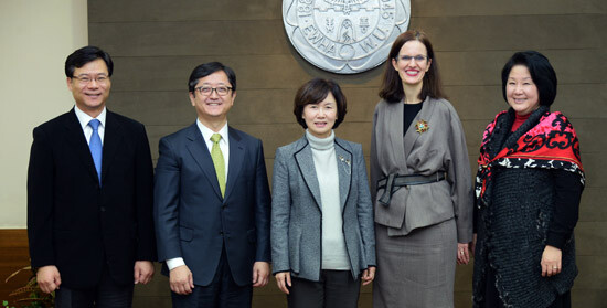 최경희 이화여대 총장은 한국 사무국의 효율적 운영 방안을 논의하기 위해 ‘메리디안 180’ 총괄 책임자인 아넬리스 라일즈(Annelise Riles) 코넬대 교수와 23일 접견을 가졌다.