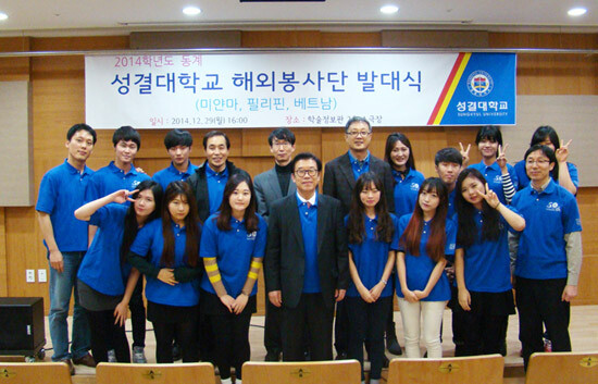 성결대는 6일 미얀마 팀을 시작으로 필리핀, 베트남 3개국에서 각각 한국의 문화를 전하며 환경미화, 교육봉사, 빈민층 봉사 등 2014학년도 동계 해외 봉사 활동을 펼친다.