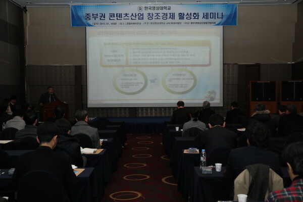 한국영상대학교(총장 유재원) LINC사업단은 16일 대전시 리베라호텔에서 중부권영상산업발전협의회(이하 협의회) 회원사와 대학 관계자 등 80여명이 참석한 가운데 중부권 콘텐츠산업 발전을 위한 세미나를 개최했다.