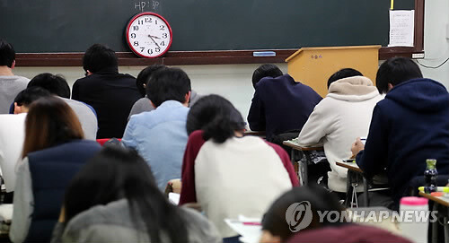 앞서 사교육걱정없는세상이 지난 20일 개최한 '수능 제도 개선안' 관련 첫 토론회에서는 객관식 문제풀이 중심의 수능 영향력을 축소하고 수능에서 절대평가 등급제를 도입해야 한다는 등의 의견이 제시됐다.(연합뉴스)