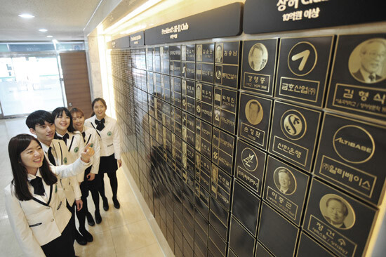 교내 행정관에 설치된 ‘기부자 명예의 전당’은 가로 7m50cm, 세로 2m65cm 크기로 천연 대리석과 동판을 이용해 제작됐다. 도네이션 보드 오른쪽에는 총장 인사말, 학교 홍보영상, 기부자들의 사진과 약력이 소개되고 기부자들을 검색할 수 있는 대형 터치스크린이 설치됐다.