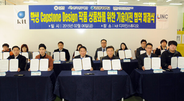 금오공과대학교(총장 김영식)는 지난 6일 교내 kit 디자인 스튜디오에서 금오공대 학생들과 기업체 대표들이 참석한 가운데 금오공대 학생들과 기업체 간 '작품 상품화를 위한 기술이전 협약'을 체결했다. 특히 이날 협약 체결은 금오공대 LINC사업단(단장 채석)과 공학교육센터(소장 윤성호)가 지난해 11월 개최한 'C(Creative)-Idea EXPO 2014'에서 체결된 MOU가 구체화된 것이다. 정부의 창조경제 실현 정책과 연계, 개최된 'C-Idea EXPO 2014'에서는 캡스톤 디자인 작품을 비롯해 학생창업동아리 작품이 전시된 바 있다.