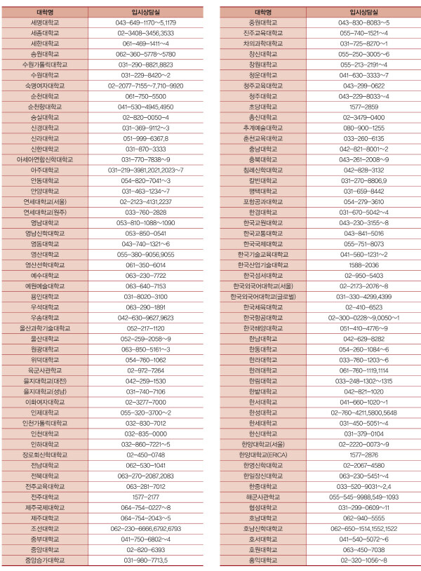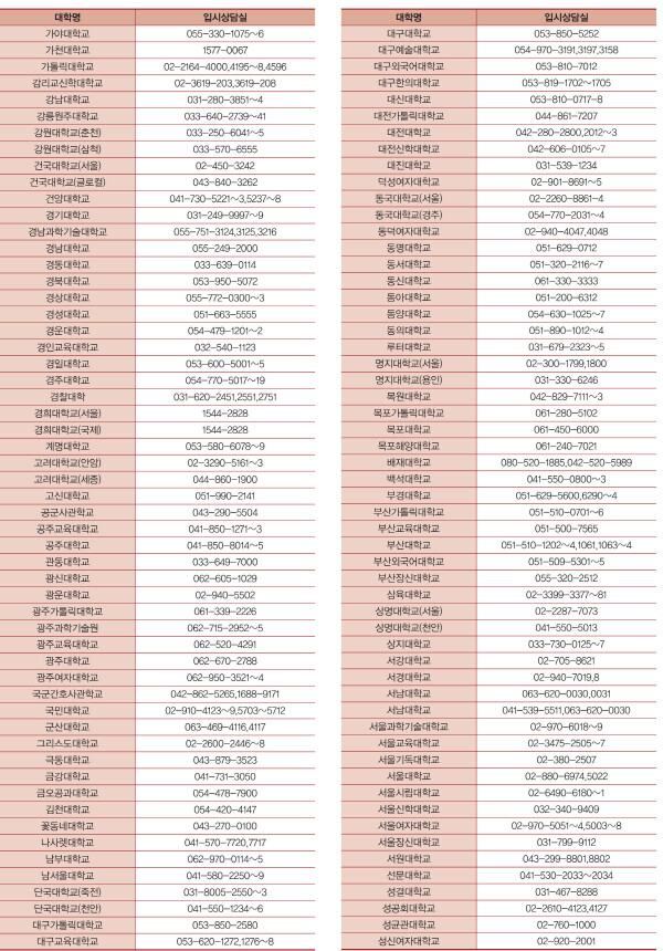 <전국 대학 입학상담 연락처>