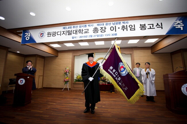 원광디지털대 서울캠퍼스 대강당에서 진행된 남궁문 총장 취임식에는 원광학원 신명국 이사장, 한국원격대학협의회 박영규 이사장, 전정희 국회의원, 율타원 김혜봉 상임중앙단원 등 내외 귀빈 및 임직원 300여명이 참석했다.