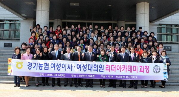 한신대 평생교육원(원장 김상욱)은 농협중앙회 경기지역본부(본부장 오경석)와 2015년 경기농협 여성이사·여성대의원 리더아카데미 과정을 주관, 지난 24일 입학식을 열었다. 입학식은 윤명희 국회의원, 오경석 본부장 등의 내빈들과 도내 농협 여성이사·대의원 등 100여 명이 참석한 가운데 한신대 60주년기념관 국제강의실에서 개최됐다.