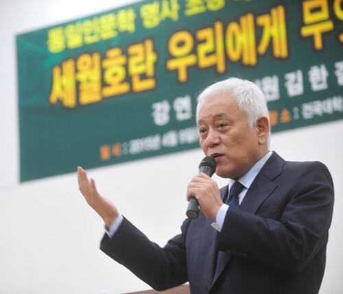 앞서 건국대학교 통일인문학연구단(단장 김성민)은 지난 9일 건국대 법학전문대학원 국제회의장에서 김한길 국회의원(전 새정치민주연합 공동대표)을 초청, '세월호는 우리에게 무엇인가-한국사회가 나아갈 길'을 주제로 특강을 개최했다.