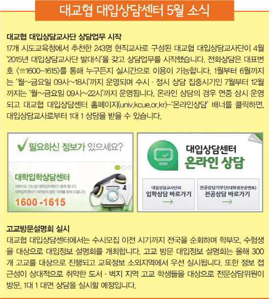<대학저널>이 한국대학교육협의회(이하 대교협) 대입상담센터와 함께 ‘대교협 대입상담센터 24시’ 시리즈를 연재합니다. 이는 대입상담센터의 실제 상담 사례를 소개함으로써 수험생과 학부모의 대입 준비에 도움을 주는 것이 목적입니다. 학생부종합전형을 준비하는 수험생들을 위해 학생부종합전형 상담 사례를 소개합니다.