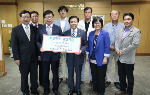 이번 발전기금은 동국대 경주캠퍼스 조경학과 85학번 동문들이 뜻을 모아 출연했다. 동국대 경주캠퍼스 조경학과는 지난 2010년 80학번 동문들을 시작으로 매년 입학 30주년이 되는 동문들이 후배들을 위해 발전기금을 전달하고 있다.