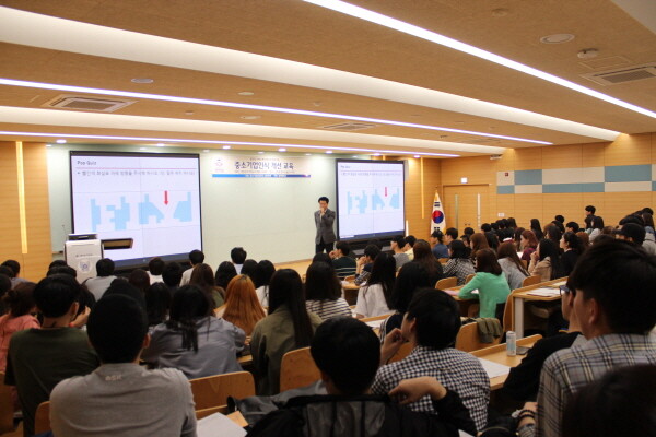 중소기업진흥공단과 신한은행은 사회공헌 프로그램의 일환으로 지난 13일 경복대 선덕관 창조인홀에서 중소기업 인식개선 교육을 열었다.