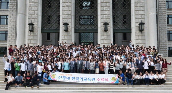 선문대학교(총장 황선조)는 19일 천안캠퍼스 대강당에서 ‘2015년 한국어교육원 봄학기 수료식’을 가졌다. 수료식에는 황선조 총장, 이재영 부총장, 이경오 한국어교육원장, 한국어교육원 교원 및 수료생 등 관계자 500여명이 참석했다.