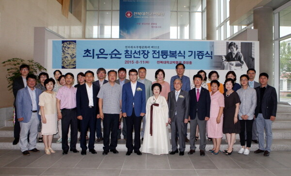 전라북도무형문화재 제22호 최온순 침선장으로부터 전통 복식을 기증받은 전북대학교(총장 이남호)가 11일 박물관에서 기증식을 가졌다.
