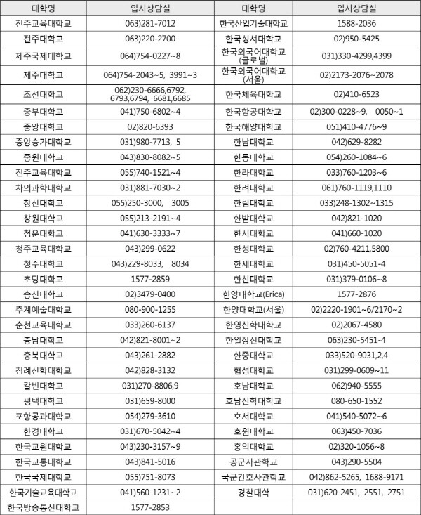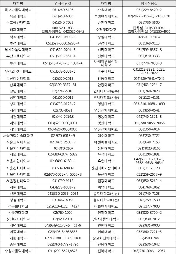 이에 따라 대교협 대입상담센터(☎1600-1615, univ.kcue.or.kr)는 24일부터 9월 8일까지 2주간 수시모집 특별상담을 실시한다. 즉 오전 9시부터 자정까지는 무료 전화상담을 실시하고, 24시간 온라인 상담을 실시한다.