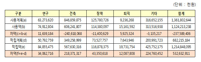적립금 유형별로는 건축적립금이 3조 7324억 원으로 비율이 가장 높았다. 뒤를 이어 기타적립금이 2조 2325억 원이었다.