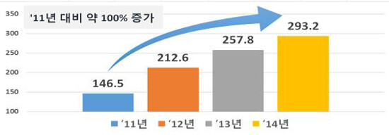 | 구 분 | 2014년 | 2013년 | 증감률(A-B)/B*100 | |||||