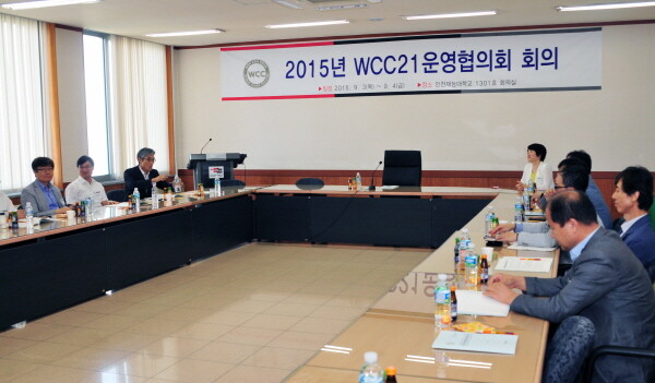 이날 회의는 2015년도 WCC대학 공동 발전을 위해 논의하는 회의로 교육부, 한국연구재단, WCC 21개 대학 사업단장 등 30여 명의 관계자가 참석했다.