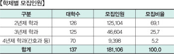 전문대교협은 “전문대학은 전공 특성에 따라 수업연한이 2년제, 3년제, 4년제로 구분된다”면서 “동일 학과라고 해도 대학에 따라 2년제 또는 3년제로 모집하고 있으며 간호과는 대학에 따라 3년제 또는 4년제로 모집하고 있기 때문에 대학 지원 시 유의해야 한다”고 설명했다.