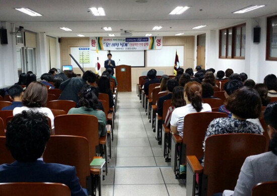 군산대학교 나의균 총장이 지역 고교생과 학부모를 대상으로 재능기부순회특강을 실시하고 있다.