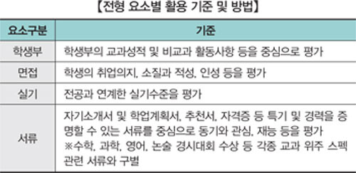학생부, 면접, 실기, 서류 등 4개 요소 중심으로 학생 선발