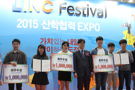 한국영상대학교(총장 유재원)가 지난 28일부터 30일까지 코엑스에서 개최된 ‘2015 산학협력 EXPO LINC페스티벌 - 캡스톤디자인 경진대회 시상식’에서 최우수상을 수상했다.