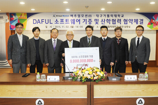 버추얼모션(주)은 구조동역학 소프트웨어 DAFUL을 교육과정에 활용할 수 있도록 90억 원 상당의 소프트웨어를 대구가톨릭대에 기증했다.