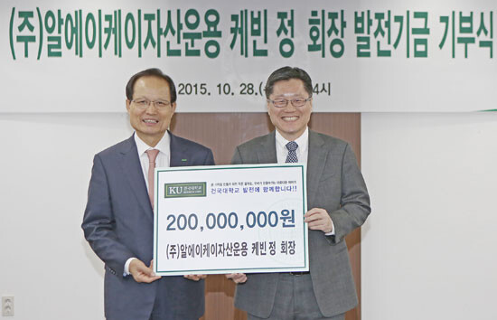 한편 알에이케이자산운용 케빈정 회장은 지난달 28일 건국대에서 열린 발전기금 기부식에서 연구센터 설립을 위한 기금 2억 원을 출연한 바 있다.