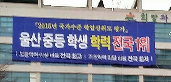 앞서 사교육걱정은 울산시교육청이 학업성취도 결과를 홍보, 학교 서열화 조장 가능성이 있다고 지적했다. 실제 사교육걱정의 조사 결과 울산시교육청은 '2015년 국가수준 학업성취도 평가, 울산 중등학생 학력 전국 1위, 보통학력 이상 비율 전국 최고, 기초학력 미달 비율 전국 최저'라고 적힌 홍보 현수막을 게재한 바 있다.