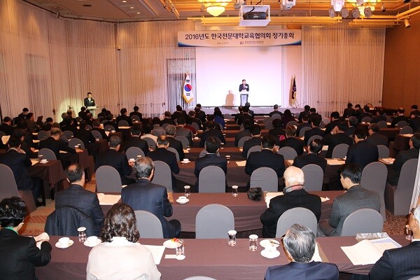 지난 27일 서울 플라자 호텔 그랜드볼룸. 이날 한국전문대학교육협의회(이하 전문대교협)는 '2016년도 정기총회'를 개최했다. 특히 정기총회에서 전문대학들은 수업연한 다양화 추진 의지를 재차 다졌다.