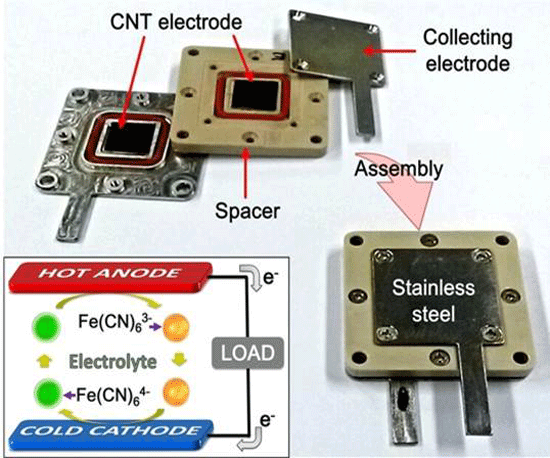 이에 강 교수 연구팀은 열을 전기로 바꾸는 물질인 열전(熱電) 소재를 수용액 전해질 기반으로 개발해 새로운 전기화학적 폐열에너지 수확 장치를 고안했다.
