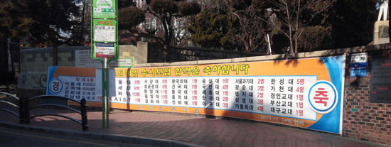 대학 합격 현수막은 오래 전부터 학원가를 중심으로 관행처럼 게시돼 왔다. 그러나 이러한 행동은 명문대에 합격하지 못한 학생들에게 소외감을 줄 수 있고 학벌주의를 부추긴다는 의견이 꾸준히 제기되고 있다.