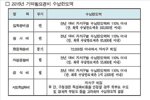 입학준비금과 행사비, 차량운행비, 급식비 등 어린이집 경비는 작년보다 10% 이내에서 올릴 수 있다. 인상률은 각 자치구가 결정한다.