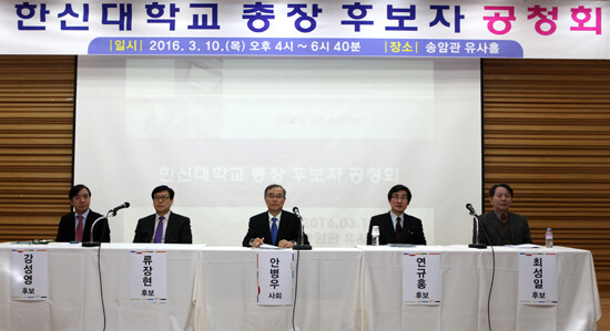 한신대는 지난 10일 한신대 오산캠퍼스 송암관 유사홀에서 '총장 후보자 공청회'를 개최한 바 있다.