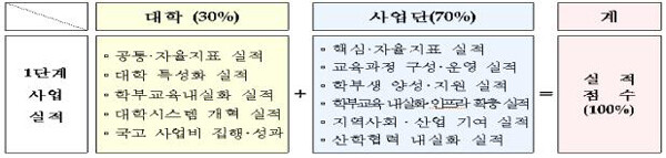성과평가는 사업선정 당시 대학과 사업단이 제시한 정원 감축, 학사구조 개편 등 대학의 체질 개선 노력과 사업단의 특성화 구축 실적 등을 종합적으로 평가한다.