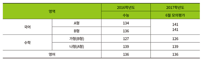 아울러 수험생 진학 지도를 위해 ‘영역/과목별 등급 구분 표준점수 및 도수분포’ 자료도 공개했다.