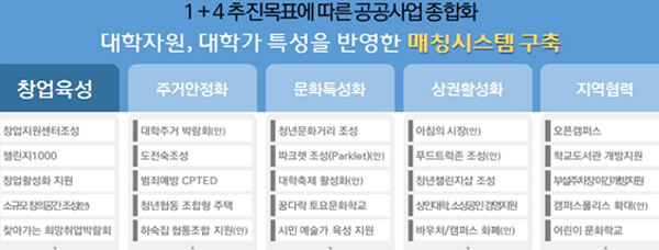 앞으로 캠퍼스타운이 조성되면 창업육성, 주거안정, 문화특성화, 상권활성화, 지역협력 등 서울시의 정책들이 대학과 지역 특성에 적합하게 매칭된다.