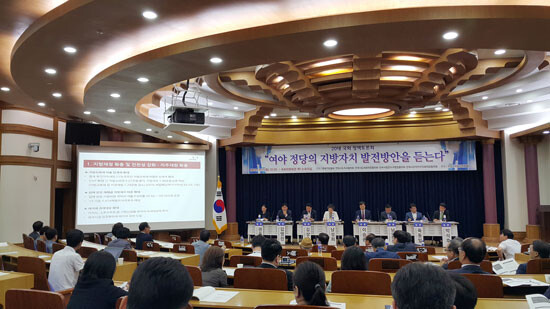 '여야 정당의 지방자치 발전방안을 듣는다'라는 주제로 각 정당별 지방자치 정책과제의 실천방안에 대한 발제와 토론이 이어졌다.