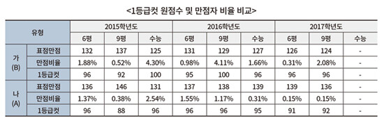 이투스 교육평가연구소는 17일 오후 12시 10분에 종료된 2017학년도 수능 수학 영역 출제경향 분석결과를 공개했다. 특히 이번 수학 영역은 개정된 교육과정으로 시행된 첫 수능이라 향후 수능의 방향성을 알 수 있는 지표로 활용될 수 있다.