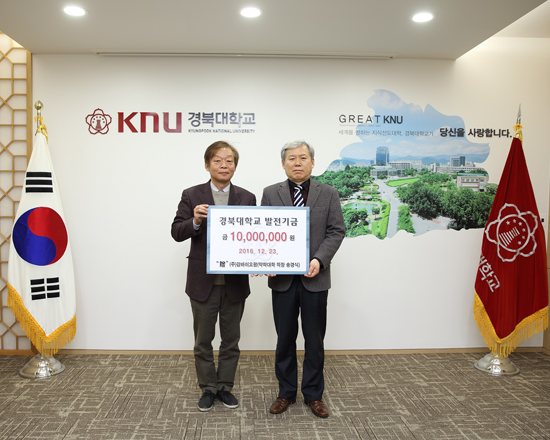 ㈜감바이오팜은 경북대 약학대학 교수를 중심으로 설립된 천연물유래 기능성소재 개발 R&D 전문기업이다. ㈜감바이오팜 대표이사 송경식 교수는 이날 김상동 총장을 방문해 발전기금을 전달했다.