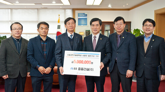 [대학저널 이원지 기자]서울과학기술대학교는(총장 김종호, 이하 서울과기대)는 지난 8일 대학본부 '중흥건설(주) 사랑의 발전기금 전달식'을 개최했다.