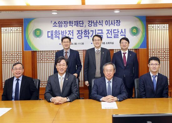 이날 소암장학재단 강남식 이사장은 우수 해양 전문인력 양성 및 대학 발전의 염원을 담아 학생들의 장학금 지원을 위한 발전기금 1억 원을 한국해양대에 약정했다.